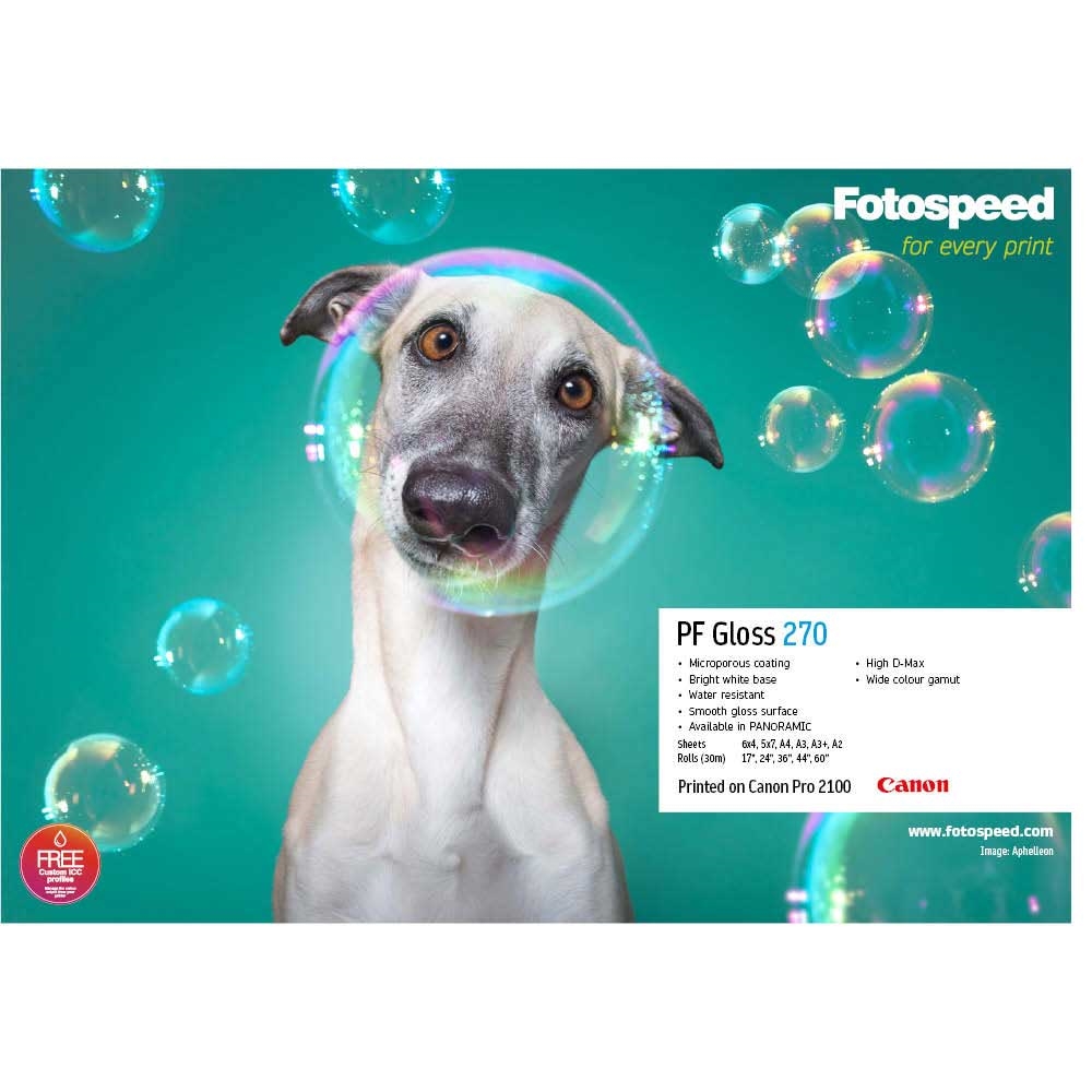 • Fotospeed PF Gloss 270 g/m² yra blizgų paviršių turintis fotopopierius.