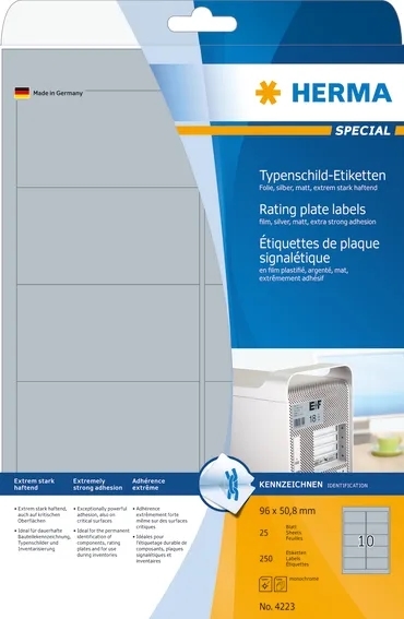 HERMA label film extra strong 96 x 50.8 mm silver, 250 pcs.