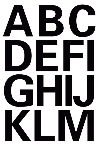 • Selvklijuojančios raidės A-Z juodoje plėvelėje - 2 lapai, atsparūs orui