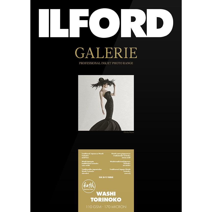 • ILFORD GALERIE Prestige Washi Torinoko yra tradicinis japoniškas FineArt popierius su rankų darbo pojūčiu ir subtilia tekstūra. Jis gaminamas tik ILFORD naudojant tradicinę Tanmo mašiną. Washi Torinoko turi unikalią ILFORD rašalinės spaudos dangą, kuri galutiniam spausdiniui suteikia platų spalvų spektrą ir puikų spalvų nuoseklumą. Washi popierius neturi rūgščių ir optinių baliklių, todėl puikiai tinka visų rūšių meno reprodukcijoms.