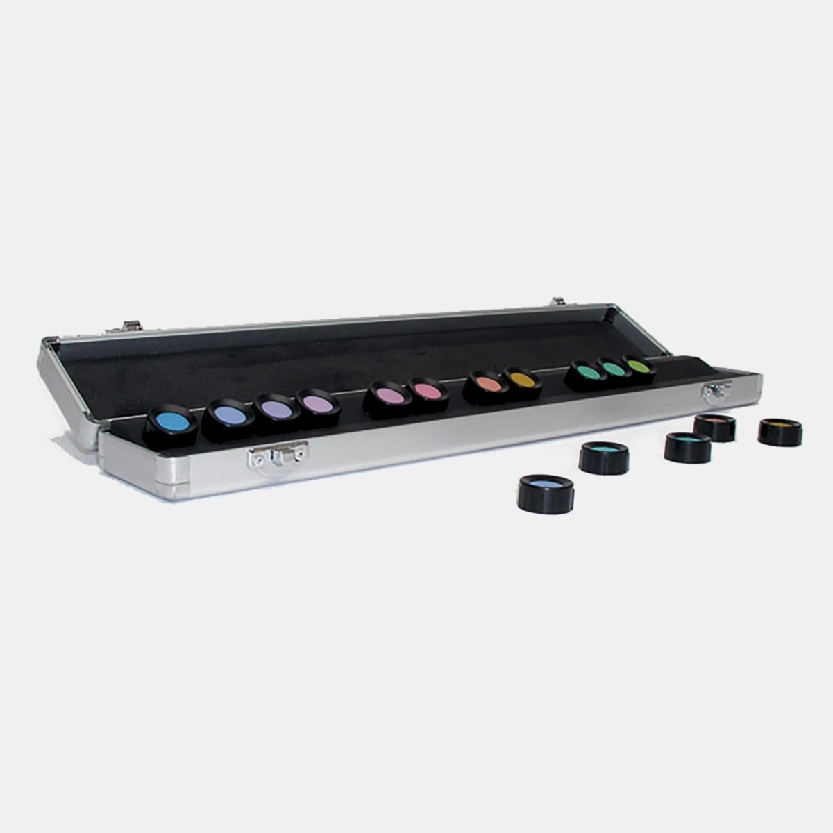 Dėklas su 15 nuimamų spalvinių etaloninių kepurėlių