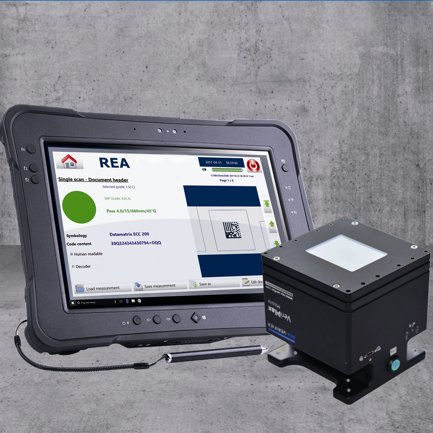 REA VeriMax Mobile dėl to yra ideali atsitiktinių pavyzdžių matavimui. Tikslūs ir pakartotiniai matavimo rezultatai bei kokybės įvertinimai galiausiai sumažina klaidas ir mažina kaštus. Taip yra todėl, kad matavimo rezultatai veikia kaip pagrindas kodų spausdinimo kokybės optimizavimui. Pati matuota vertė gali būti skaitoma ir valdomi REA VeriMax Mobile programinės įrangos taikinyje, kuris yra optimizuotas jutikliniam ekranui.