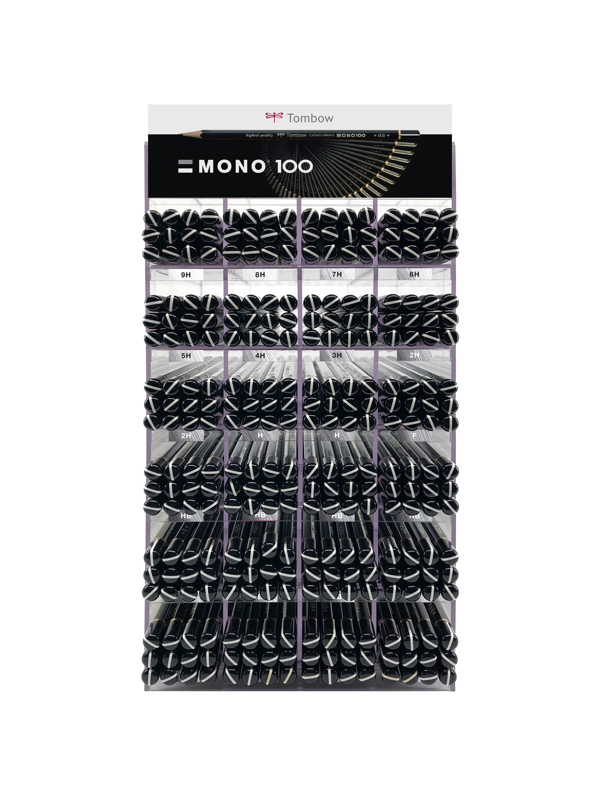 • Mono 100 pieštukai. Akrilo stovo turinys, susidedantis iš 288 pieštukų. 12 vnt. x 9H, 8H, 7H, 6H, 5H, 4H, 3H, F, 3B, 4B, 5B, 6B + 24 vnt. x 2H, H, B, 2B, + 48 vnt. x HB = 288 pieštukų. Stovas užsakomas atskiru prekės numeriu (TOM29255). Kokybiškas pieštukas dailininkams ir architektams.